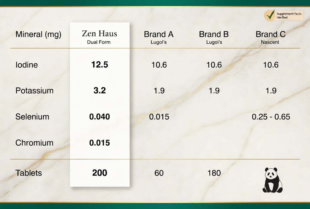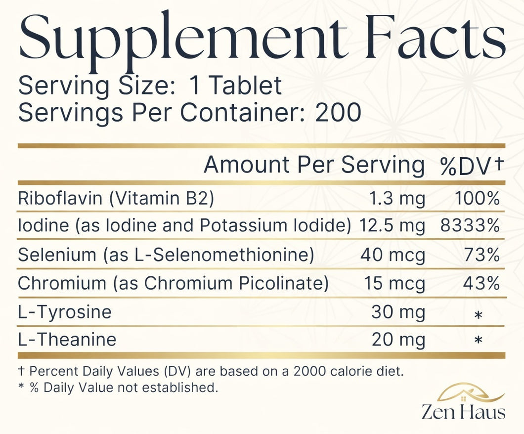 Each tablet contains 12.5 mg of elemental iodine to nourish and protect the thyroid.